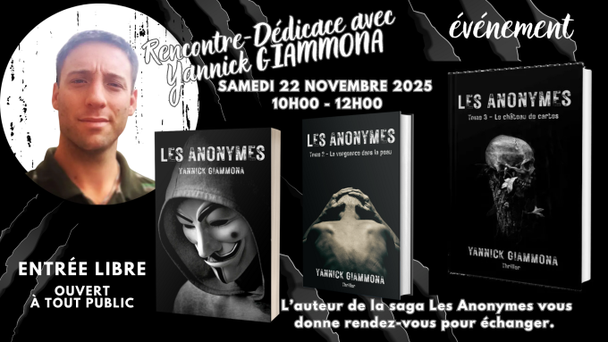 La bibliothèque accueille Yannick Giammona pour une rencontre-dédicace autour de sa saga Les Anonymes (thriller)