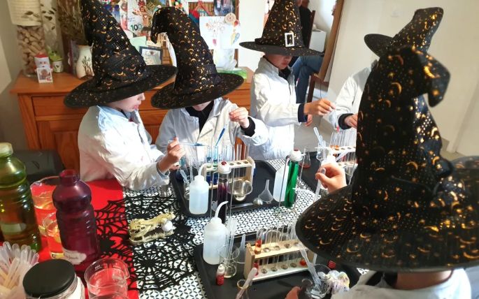 Le temps d’un atelier, les enfants se transforment en apprentis sorciers. Potions qui bullent, se séparent…. moussent ! Les petits sorciers vont pouvoir réaliser LA potion à ramener à la maison.